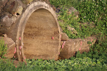 Drainage, sewer pipes, concrete pipes, leading water under the road