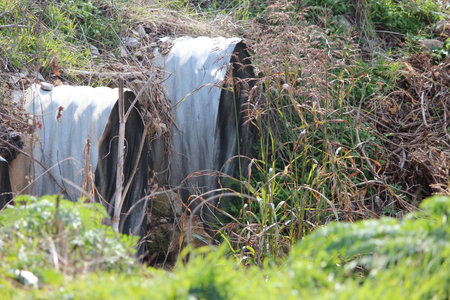The tunnel cement pipe has black shadow. Agricultural area of Thailand.