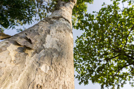 Tree bark texture with blue sky background