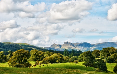 Hills across fields in the lake district