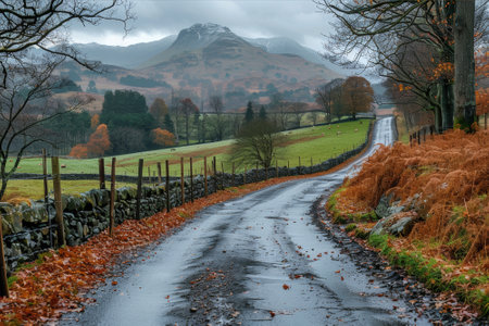 England lakeland scene mountain road in Scaffel area