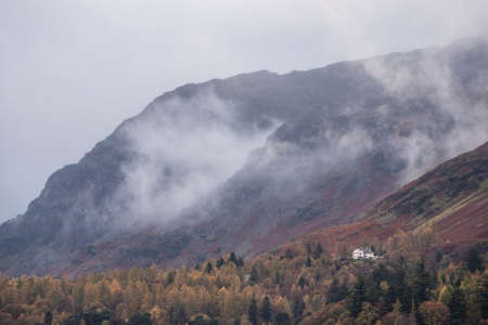 Beautiful landscape image of misty morning in the English Lake District