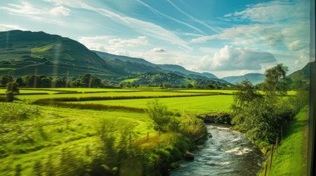 a river flows through the picturesque scottish landscape captured in this photo. with an 8k resolution, the image showcases a serene atmosphere with pastoral settings. the color palette features a combination of dark cyan and light amber, complemented by hints of light pink and amber. this photo is available under the creative commons attribution license. ai generated
