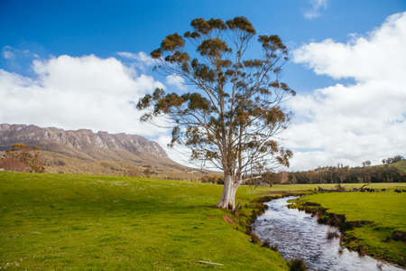Australian countryside landscape in winter, the bush of Tasmania in the Houn Valley