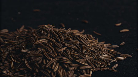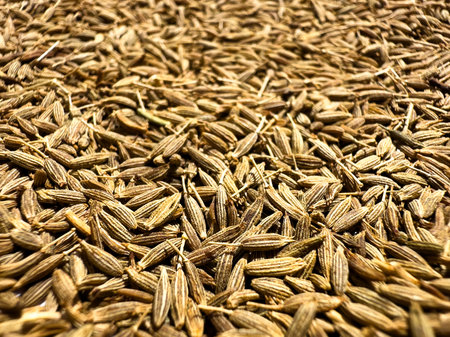 Macro close up of cumin seeds, selective focus