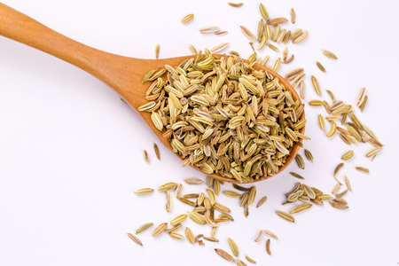 Dried herb, fennel seeds isolated, top view