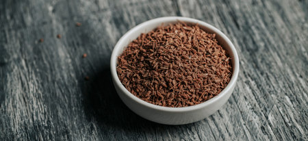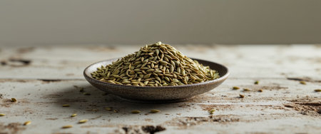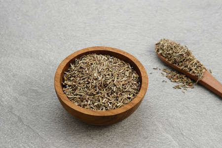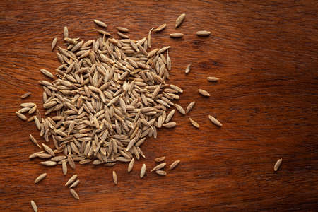 dried cumin on wooden surface