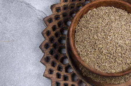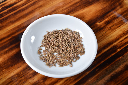 Cumin seeds in a wooden plate