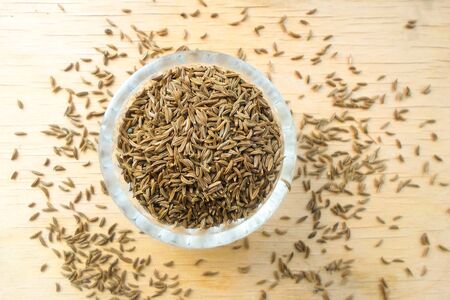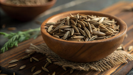 cumin zira seeds in wood bowl on table