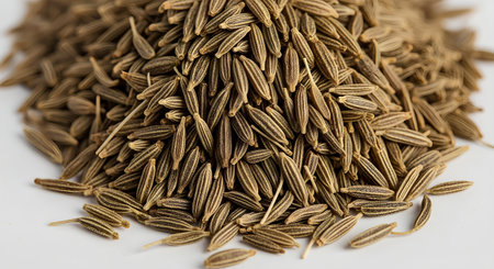 Dried Cumin Seeds Close-Up Culinary Ingredient on White Background