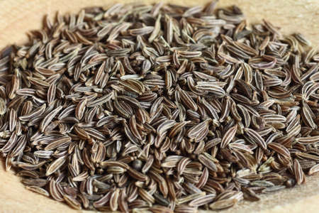 a lot of caraway seeds on a wooden table. Healthy lifestyle concept.