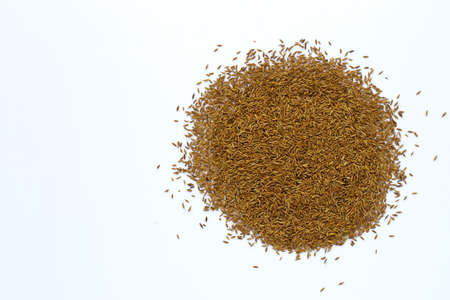 Dried Cumin Seeds Close-Up Culinary Ingredient on White Background.