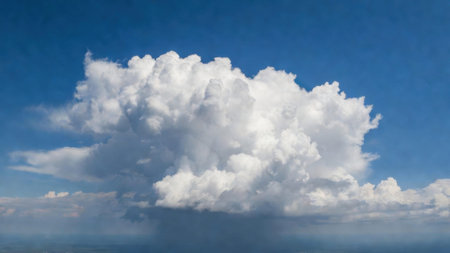 Majestic cumulus cloud expansive against clear blue sky.