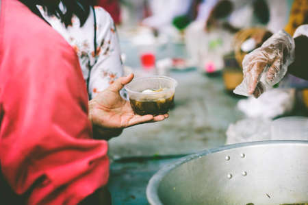 Free food for the poor and Food distribution : concept Sharing Food With Homeless