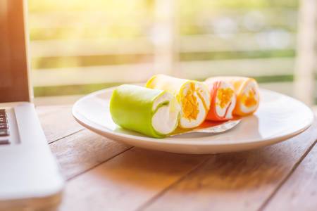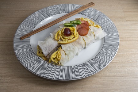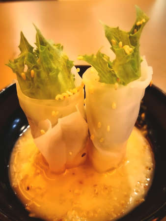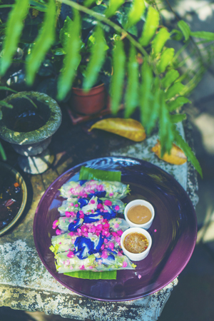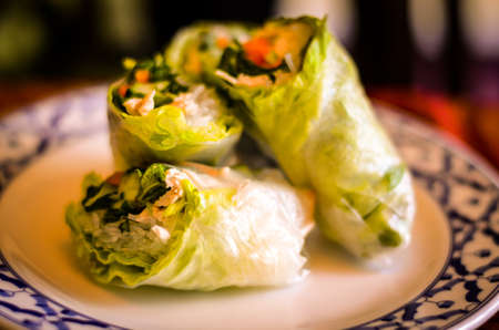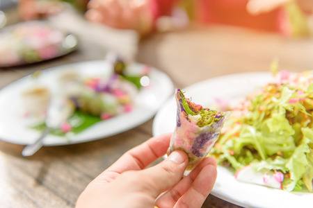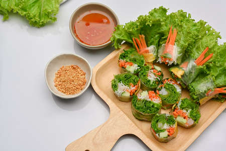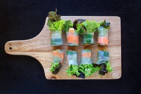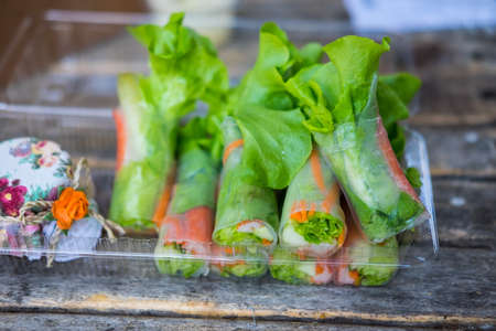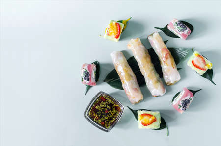 Fusion food many kind of vegetable spring rolls for healthy eating.