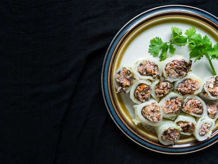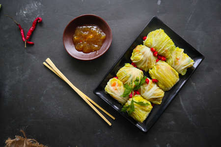 cabbage rolls stuffed meat or kol gulung, kelem dolmasi, sarma Cabbage wraps, Chou farci, golubtsy, golabki.cooked cabbage leaves wrapped with meat, or beef.