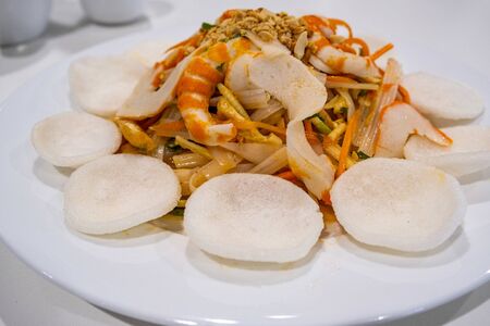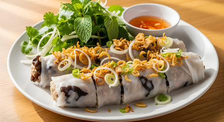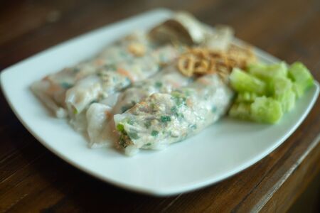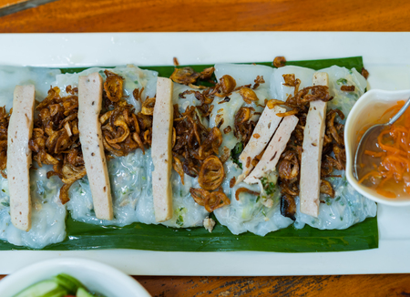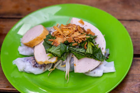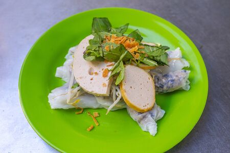 Plate of Vietnamese food, Banh Cuon - Rice noodle rolls