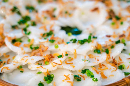 Traditional VIETNAM food in mini dish rice pancake, top view