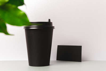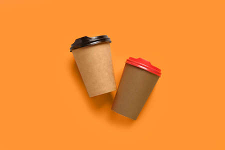 selective focus. paper cups for hot drinks coffee and tea, with a plastic lid, to take away. Copyspace