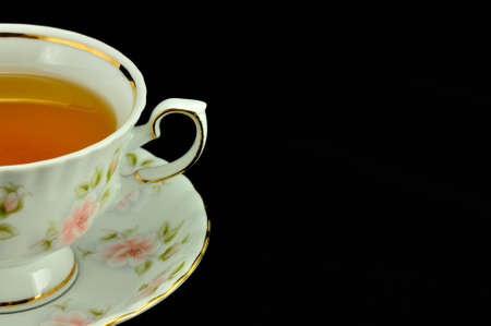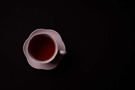 Ceramic Tea Cup on Black Background. Pink cup with black tea
