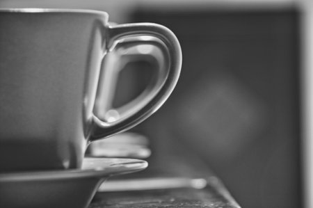 dirty coffee over white table black and white color