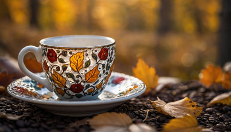 Vibrant Cup of tea on table on autumn background