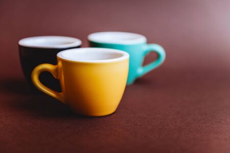 colorfull cups of espresso coffee on dark background