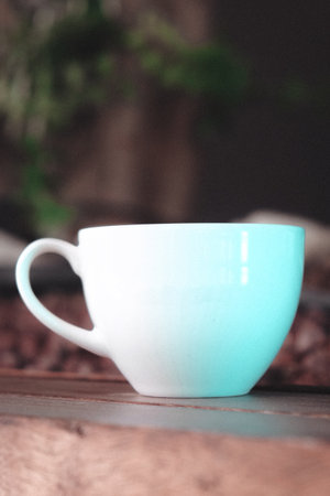 Blue porcelain cup filled with coffee