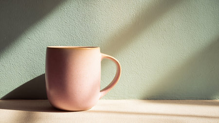 photo of a minimalistic white coffee cup placed on the lower-left corner of an empty beige background, illuminated by soft natural light creating a warm and serene ambiance. Large empty space dominates the frame, perfect for mockup or text, isolated on beige background --no people man woman --chaos 12 --ar 16:9 --style raw --stylize 250 --weird 150 --v 6.1 Job ID: 98c60ace-0819-415d-9c4c-c88114dcd465