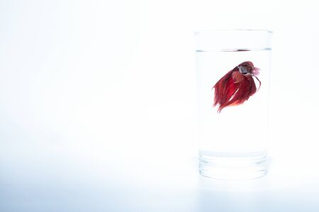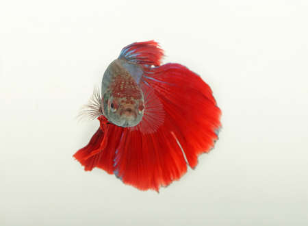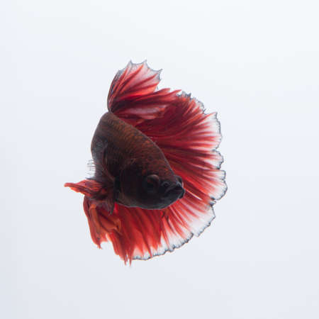 Capture the moving moment of red siamese fighting fish isolated on white background. Betta fish.
