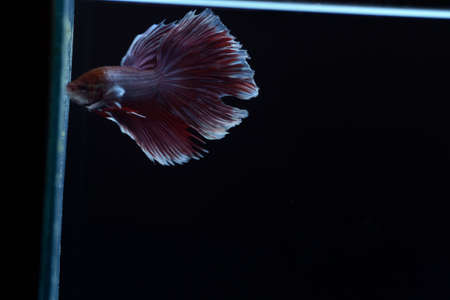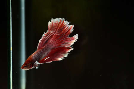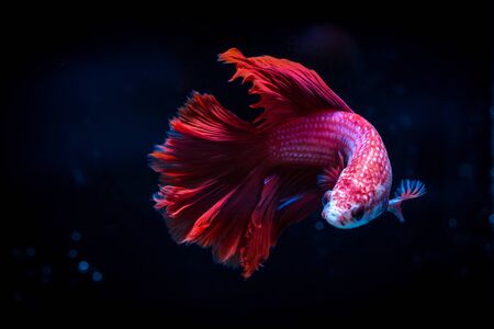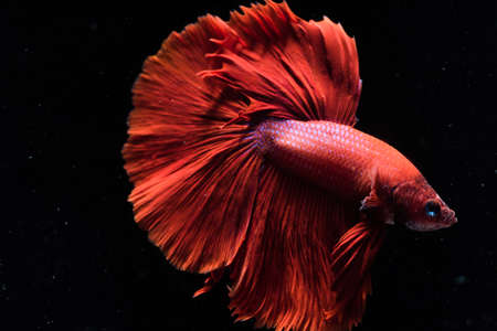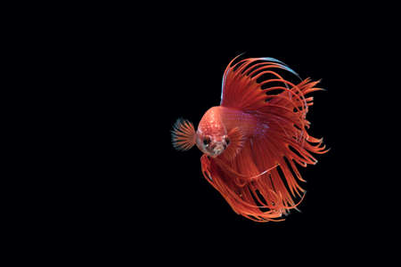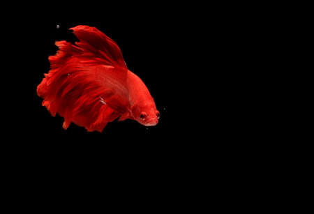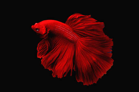Capture the moving moment of red siamese fighting fish isolated on black background. Betta fish.