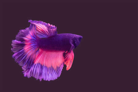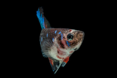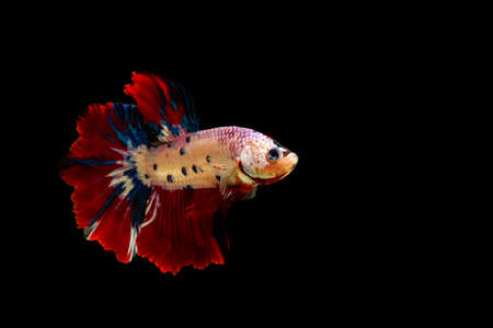 Colorful Siamese fighting fish or betta fish isolated on black background with clipping path and copy space