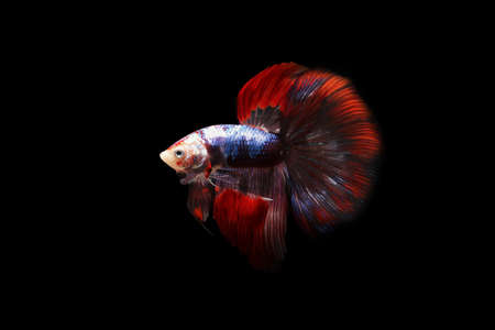 Close up art movement of Betta fish or Siamese fighting fish isolated on black background