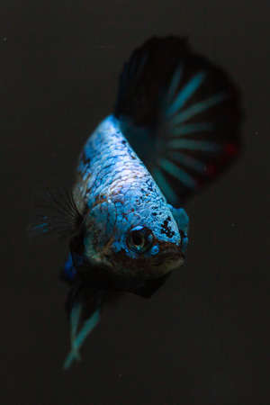 Close up of colorful Betta fish. Beautiful Siamese fighting fish, Fancy Betta splendens blue panda isolated on black background.