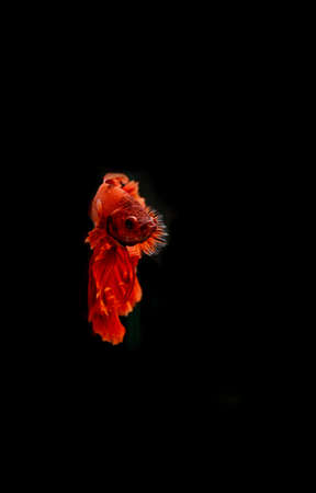 Halfmoon Betta fighting fish in Thailand on isolated black background. The moving moment beautiful of red Siamese betta fish with copy space.