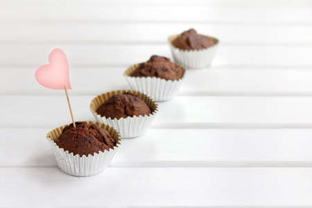 one of the chocolate muffins is decorated with a heart symbol / different from others