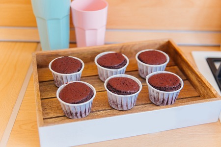 Muffins, homemade chocolate cupcakes.