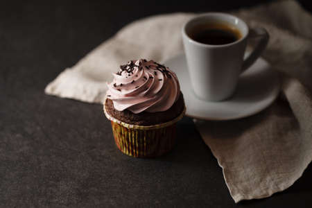 Delicious cupcake with frosting and coffee on the side., generative AI