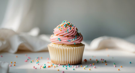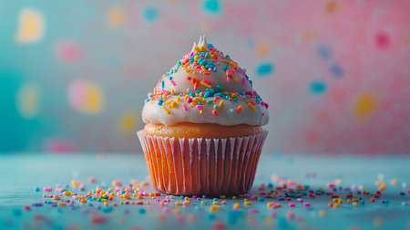 AI Generated. Delightful Pastel Cupcake with Sprinkles