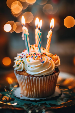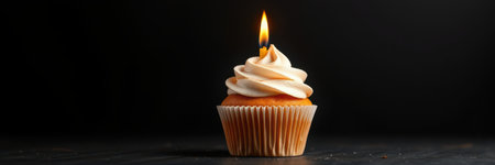 Delicious cupcake with frosting with candle, perfect for birthday celebrations.