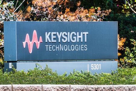 August 12, 2019 Santa Clara / CA / USA - Keysight Technologies sign at the Company's campus in Silicon Valley; Keysight manufactures test and measurement equipment and software for electronics