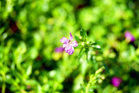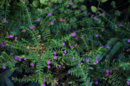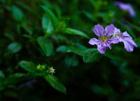 Purple tropical flowers Cuphea hyssopifolia and Rhoeo