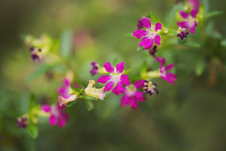 Close up on beautiful pink magenta colour flower. False heather, or mexican heater plant.