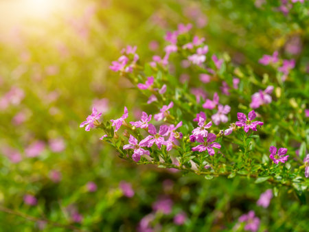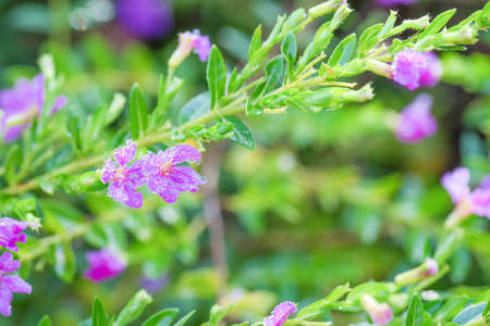 Close up False heather, Elfin herb flower with sunlight. (Scientific name Cuphea hyssopifolia Kunth)