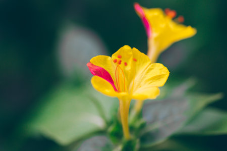 Closeup photo of beautiful blooming Mirabilis Jalapa or Four o Clock Flowers.
