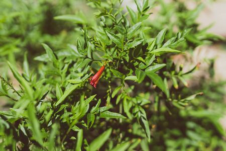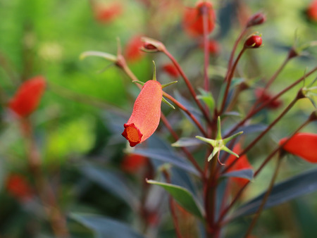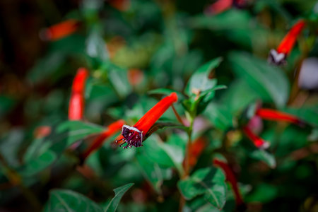 Cuphea ignea or the cigar plant, cigar flower, firecracker plant growing in Da Lat in Vietnam