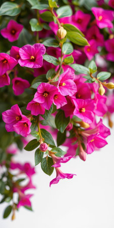 Beautiful blooming bougainvillea flowers in vibrant pink hanging from a lush green plant