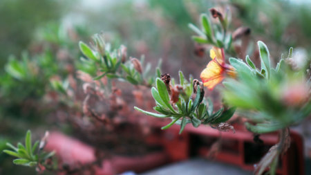 Beautiful portulaca grandiflora with vintage image style, Top view yellow flower portulaca oleracea.