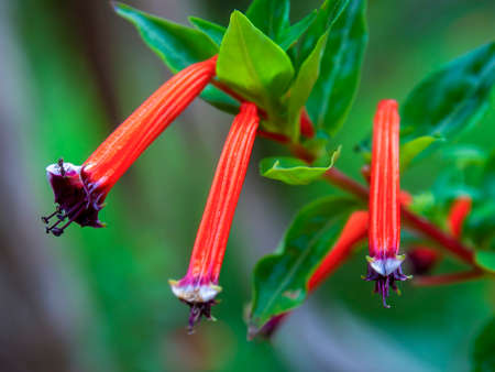 The Mexico native Cuphea ignea plant Mexican cigar in flower. High quality photo