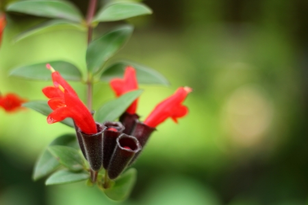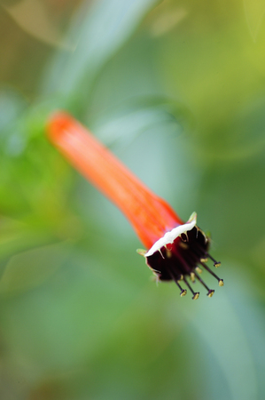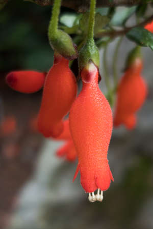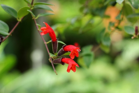 Seemannia sylvatica (The Hardy Gloxinia) ; A colorful of cylindrical shape flower, succulent, smooth texture. The orange red color harmony to long flower stem, hollow which branched close to the base.